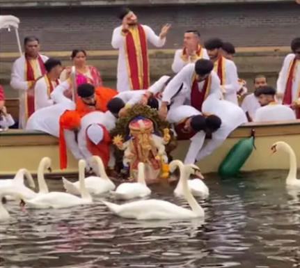 ലണ്ടൻ: ഗണേശോത്സവത്തിന്റെ ഭാഗമായും ആചാരപരമായ വിശ്വാസത്തെയും പ്രതീകമായി, ലണ്ടനിലെ ഒരു നദിയില് നടന്ന ഗണേശ വിഗ്രഹ നിമജ്ജന ചടങ്ങ് സാമൂഹ്യ മാധ്യമങ്ങളിൽ വലിയ ചര്ച്ചയ്ക്ക് വഴിയൊരുക്കി. ചടങ്ങിന്റെ ദൃശ്യങ്ങള് ഉള്പ്പെടുത്തിയ ഒരു വീഡിയോ ഇന്സ്റ്റാഗ്രാമില് പങ്കുവെച്ചതിനു ശേഷം വലിയ രീതിയിൽ പ്രചാരത്തിലായി. 1.6 ദശലക്ഷത്തിലധികം പേരാണ് വീഡിയോ ഇതുവരെ കണ്ടത്.